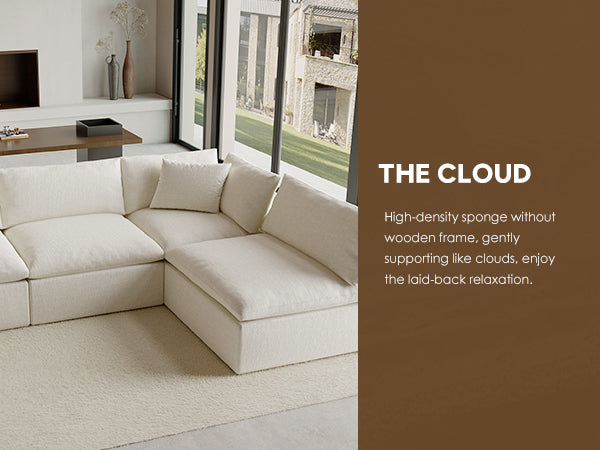 Life happens, and we’ve made it easy to clean. All cushion and armrest covers are removable and machine-washable. The durable, breathable fabric is pet-friendly and scratch-resistant, keeping your Warm White cloud couch looking brand new even in active households.